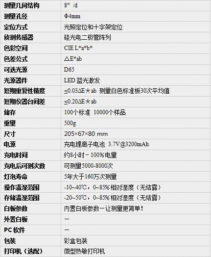 产品说明 DR100色差仪是依据CIE(国际照明委员会)的相关标准、国家标准研发生产的精密仪器。该色差计采用全新进口关键元器件,经精心 设计,具有精确稳定、操作简单、易学易懂、经济实惠等特点。 DR100色差仪适用于纺织、印染、服装、鞋业、皮革、化工、塑料、塑胶、颜料、油漆、油墨、印刷、五金、摄影、玩具、食品、 医药等行业的颜色品质控制、色差检测。 主要优点: 1、价格低廉; 2、更高的短期重复性精度:ΔE≤0.03; 3、光照和十字架双定位功能; 4、配置可充电的锂离子电池,无需反复购买电池; 5、Φ4mm测量口径,手提式结构,适用于更多测量场合; 6、深蓝色主流外形,彩盒快速包装,运输方便; 7、内置白板参数,无需进行黑白板校正; 8、无需连电脑开机即用—让测量更简单! 技术参数: |