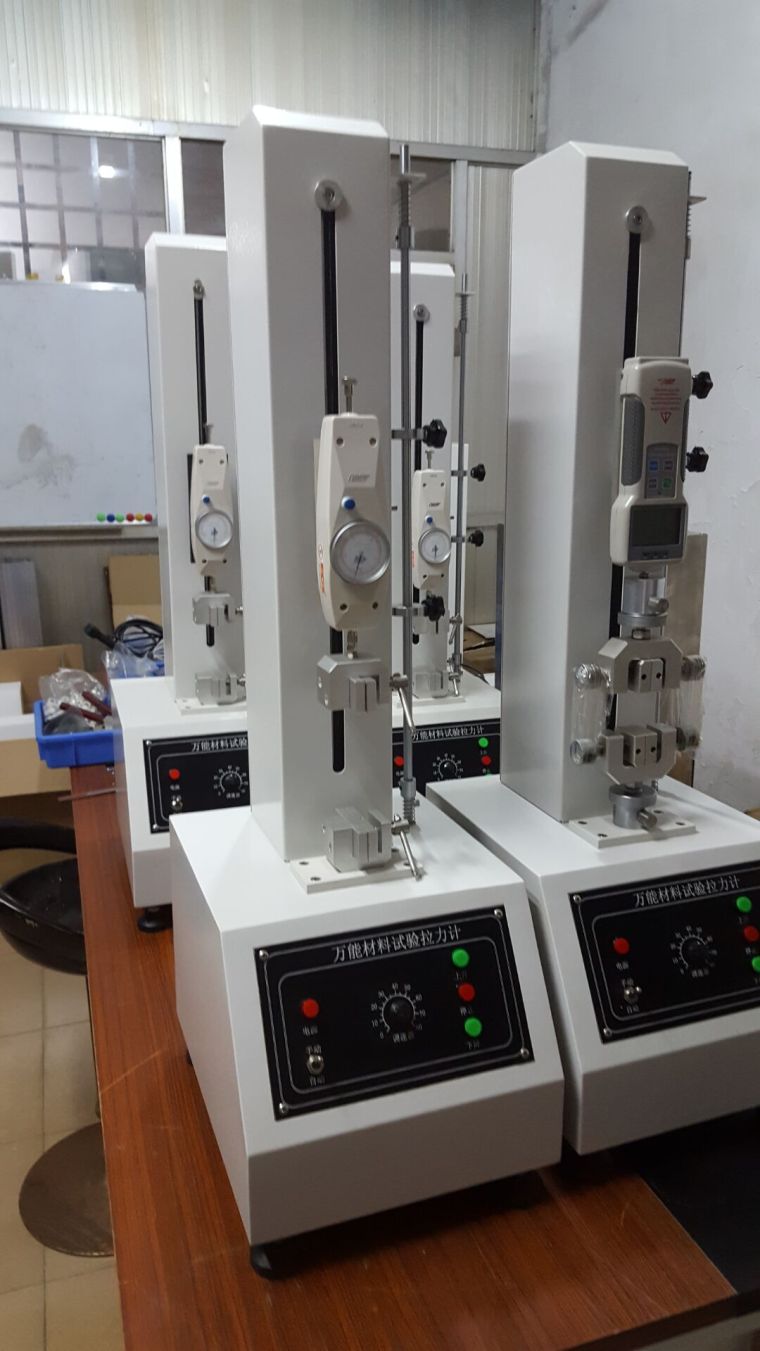 技術指標 1. 容量選擇:2、5、10、20、50kg; 2. 感測方式:推拉力計; 3. 荷重精度:±1%; 4. 最大行程:350mm; 5. 控制系統:電動; 6. 試驗速度:10-300mm/min; 7. 位移精度:±1%; 8.電源AC:220V 50HZ; 9.尺寸: