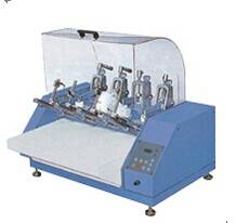 测试运动鞋、休闲鞋和工作鞋等成品鞋。采用抬后跟的曲折方式,以定频率、定角度的方式,在长时间的连续往复弯折成鞋后,评估其耐折性能和龟裂程度。 皮带轮以无间隙方式与转轴紧密结合,将磨损和噪音降至最低,配合齿形皮带似的转速准确稳定,配以抵消震动设计和防震脚架,具有美观、坚固、稳定、耐用、低磨损、低噪音、操作简单、保养容易等性能。配备压克力保护罩,保证操作者安全。 技术参数: 1. 弯折角度/弯折速度:0~50°/50~300cpm,60~90°/50~150cpm可调。 2. 容许试件长度/宽度:150~400mm/150mm。 3. 计数器:6位LCD数显。 4. 可同时测试:4个试样。并可同时以不同角度进行测试。 5. 体积约95×56×63cm。 6. 设计合理,机型美观,试件夹持、取出容易,转轴由碳钢做成,坚固耐用, 符合标准:符合ISO 4643, 5423 SATRA TM 92