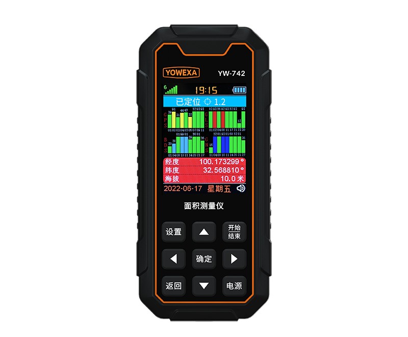 产品特点 ● 四星定位 ● 语音播报 ● USB锂电直充 ● 多卫星定位 ● 数据存储 ● 车载模式 ● 彩屏背光 ● 坡度测量 【产品描述】 YW-742系列仪器用于测量面积和距离,如农田面积测量、机械作业面积测量、池塘湖泊测量及公路距离测量等都可使用。 此系列仪器有YW-742、YW-742-HP和YW-742-S三个型号。 YW-742系列屏幕为高清彩色大屏,清晰显示、易于读数。仪器采用全球卫星定位系统实时提供经、纬度定位信息,可实时显示测量轨迹。 YW-742系列具有多种面积测量模式,能够满足用户的多种测量需求。用户只要根据测量需要选择合适的测量模式,即可轻松获取被测地块的周长、面积和亩值等数据。 YW-742系列配备PC软件,用户可通过PC软件查看测量数据及导出多种文件格式(CSV/KML/DXF/PNG)等。 【应用领域】 农田面积测量 林业面积测量 水域面积测量 机械作业面积测量 【技术参数】