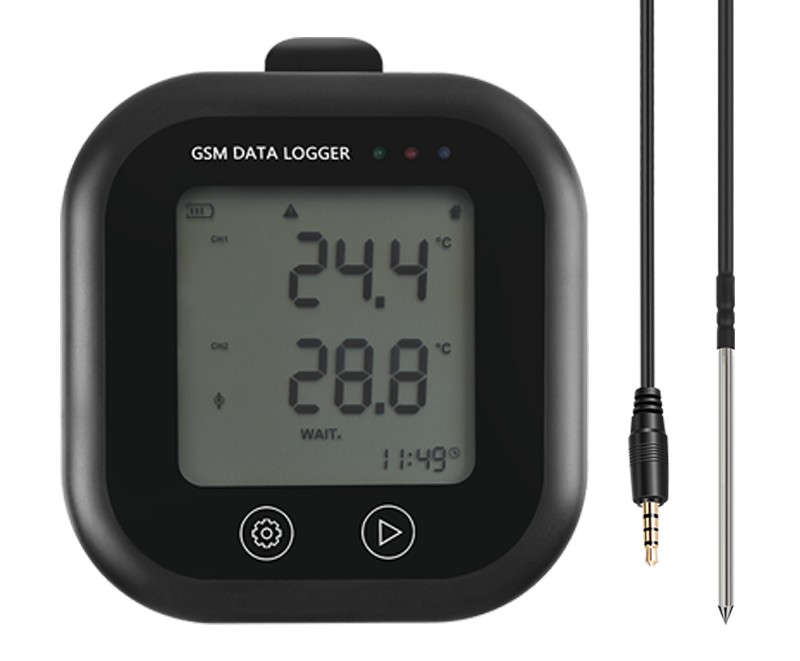 产品特点 ● 收发手机短信,可同时对接3个手机号 ● 配备手机APP,配备PC端软件 ● 存储容量可达500000组数据 ● 可生成txt/csv/xls/dlg格式文件 ●防护等级 IP65 ● 多种电源方案 【产品描述】 GSM系列记录仪为无线网络平台温湿度测量记录仪器,该系列仪器均支持记录功能。收发手机短信是本系列仪器的特色功能之一。 GSM系列记录仪配备了专业的PC端软件和手机APP。用户可通过PC端软件或手机APP设置仪器的功能和参数,还可使用手机APP实时查看数据以及管理接收到的短信。用户只需将仪器(通过USB)连接到电脑,无需附带软件即可直接获取记录产生的数据报告。用户还可通过PC端软件将仪器内的数据导出为多种不同格式的文件。 GSM-100E使用普通温度探头,其内置温度探头测量范围为-30~+65℃,外置温度探头测量范围为-40~+125℃。 GSM-200E在GSM-100E的基础上,增加了湿度测量功能。该仪器机身具有较好的防水性,因此需搭配外置温湿度探头使用。 GSM-700E在GSM-100E的基础上,优化了原理,加大了外置探头的测量范围,其内置温度探头测量范围为-30~+65℃,外置温度探头测量范围拓宽至-200~+250℃。 【主要功能】 显示最大、最小、平均值 多种探头供选择 测量间隔10秒~18小时可选 超长待机时间 断电数据不丢失 低电保护 【应用场景】 医药生产,质检及仓储过程监测,楼宇环境监测,研发、实验室,医院监测,药品与食品冷链监测、生产,运输及仓储监测,博物馆,温室,仓库温度监测,环境监测,过程温度检测等 【技术参数】