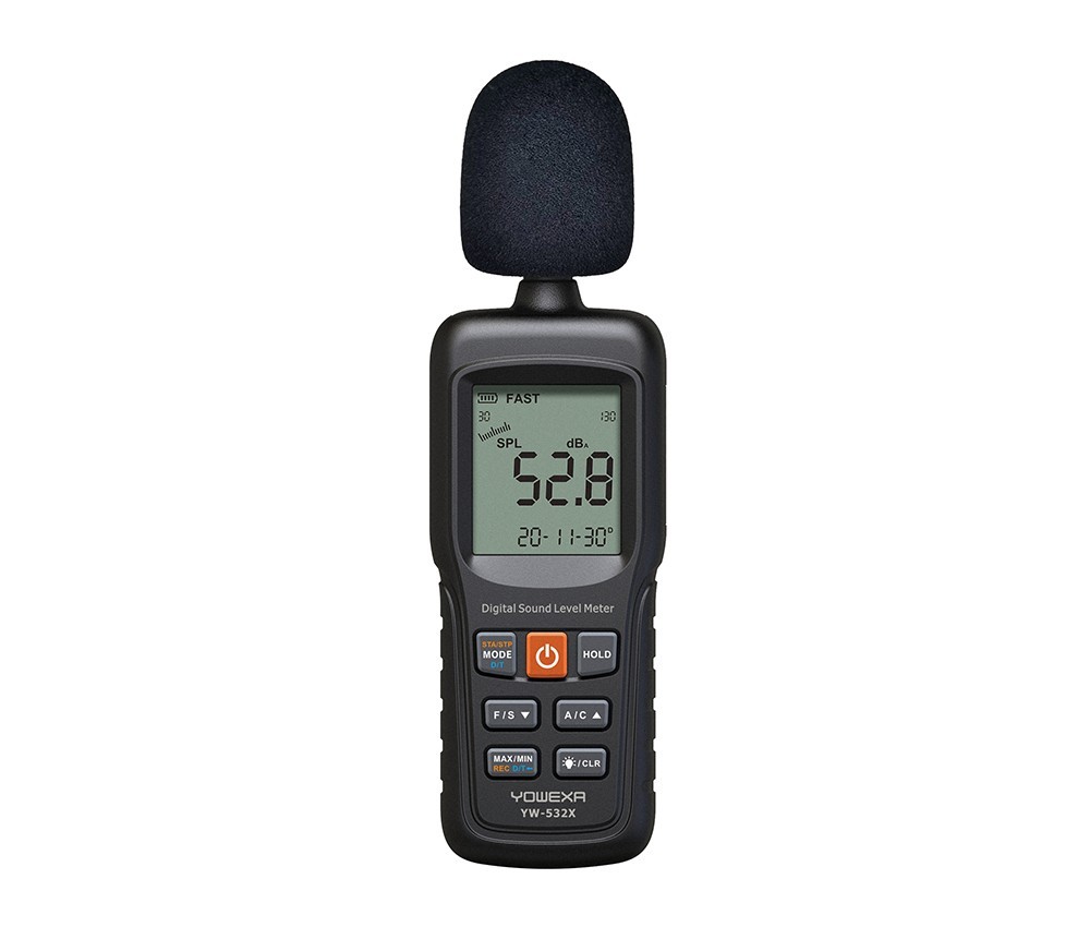 产品特点 ·频率计权 A/C ·时间计权 SLOW/FAST ·DC/AC 信号输出 ·配备 PC 软件 ·数据记录 ·USB 数据导出 ·最大/最小值测量模式 ·4 种测量档位 ·数值锁定(HOLD) ·支持用户校准 ·屏幕带背光 ·自动关机 【产品描述】 YW-532是一款测量环境噪音值的仪器,可用于机器制造、设备检修、建筑设计、交通运输、环境保护以及卫生医疗等领域。 YW-532测量分辨率为0.1dB,精度为±1.5dB。仪器支持A和C频率计权。A计权对环境原始噪音信号的低频成分衰减较多,模拟了人耳的听觉特性,从听觉上评价噪音的大小,因此应用最广泛;C计权对环境原始噪音信号的修改较少,可真实反映环境的噪音大小。 YW-532支持慢速(SLOW)和快速(FAST)时间计权。慢速时间计权的时间常数为1秒,用于测量稳态噪音;快速时间计权的时间常数为125毫秒,用于测量快速变化的不稳态噪音。 YW-532还提供了3.5mm音频接口,可同时输出DC和AC信号。DC接口输出直流电压信号,电压大小与噪音值成正比(10mV/dB),可用于数据的二次标定或显示设备的拓展;AC接口输出交流电压信号,可用于环境噪音的频谱分析。 YW-532X 在 YW-532 的基础上增加了记录功能,可将测量过程中的数据全部记录下来。YW-532X 通过 USB 连接电脑后,可结合 PC 端软件使用。 YW-532X 配备的 PC 端软件可实时监测噪音值。用户可在软件界面查看仪器记录的数据,还可利用软件导出多种不同格式的文件。 【应用场景】 机器制造、设备检修、建筑设计、交通运输、医疗卫生、环境保护 |