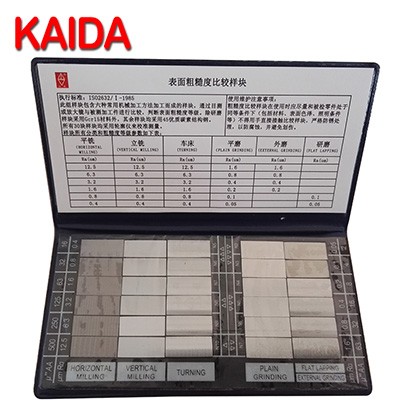 表面粗糙度比较板【30块装】 包含 | 加工方法 | 粗糙度值(Ra) | | 研平面(3块) | 0.05,0.1,0.2μm | | 铰削(3块) | 0.4,0.6,1.6μm | | 磨削(6块) | 0.05, 0.1,0.2, 0.4, 0.8,1.6μm | | 卧铣(6块) | 0.4,0.8,1.6,3.2,6.3,12.5μm | | 立铣(6块) | 0.4,0.8,1.6,3.2,6.3,12.5μm | | 车削(6块) | 0.4,0.8,1.6,3.2,6.3,12.5μm |