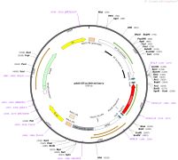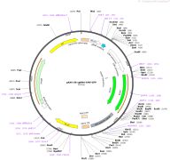 质粒名称:pAAV-CMV-iRFP 质粒编号:64887 质粒备注: Marking retinal neurons with infrared fluorescent proteins (iRFP) to preserve photoresponsiveness 载体名称:pAAV-CMV 载体类型:Mammalian Expression, AAV 原核抗性:氨苄青霉素,100μg/mL 培养温度:37℃ 克隆菌株:NEB Stable 高拷贝/低拷贝:高拷贝 插入基因:iRFP 物种来源:Rhodopseudomonas palustris 插入大小:948 启动子:CMV 克隆方法:限制性内切酶 5'克隆位点:BamHI (not destroyed) 3'克隆位点:HindIII (not destroyed) 5'测序引物:pCAX-F (CAGCTCCTGGGCAACGTGC) 3'测序引物:C-CMV-24 (TATTAGGACAAGGCTGGTGGGCAC) 质粒图谱: