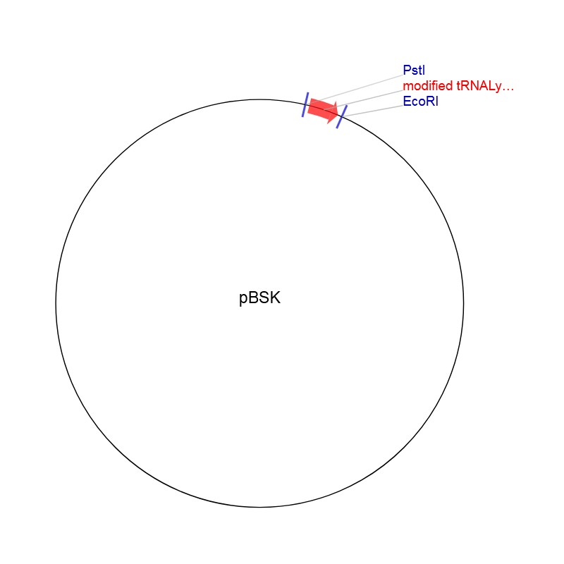 质粒名称:pBSK 质粒编号:67504 质粒备注: Express the tRNALys scaffold 载体名称:pBSTNAV 载体大小:3019 完整质粒大小:3080 载体类型:原核表达 原核抗性:氨苄青霉素,100μg/mL 培养温度:37℃ 克隆菌株:XL1 Blue 高拷贝/低拷贝:未知 插入基因:modified tRNALys human 物种来源:H. sapiens (human) 插入大小:74 启动子:lpp 克隆方法:限制性内切酶 5'克隆位点:PstI (unknown if destroyed) 3'克隆位点:EcoRI (unknown if destroyed) 5'测序引物:M13F 3'测序引物:M13R |