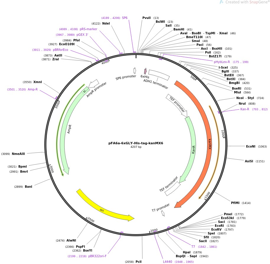 pFA6a-6xGLY-His-tag-kanMX6