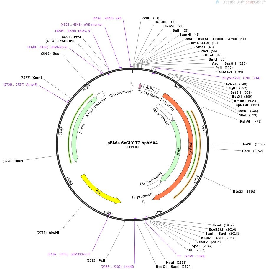 pFA6a-6xGLY-T7-hphMX4