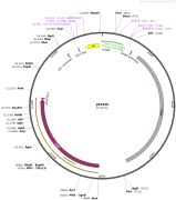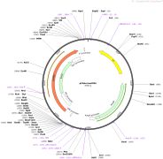 质粒名称:pFA6a-His3MX6 质粒编号:41596 载体名称:pFA6a 载体大小:2300 载体类型:Yeast genomic targeting 筛选标记:HIS3 原核抗性:氨苄青霉素,100μg/mL 培养温度:37℃ 克隆菌株:DH5alpha 高拷贝/低拷贝:未知 插入基因:His3 基因别名:k-HIS3 基因别名:SKHIS3 物种来源:S. kluyveri 插入大小:1403 标签/融合蛋白:· A. gossypii translation elongation factor 1a gene promoter (N terminal on insert) · A. gossypii translation elongation factor 1a gene terminator (C terminal on insert) 克隆方法:限制性内切酶 5'克隆位点:BglII (not destroyed) 3'克隆位点:PmeI (not destroyed) 5'测序引物:Sp6_primer 3'测序引物:T7_promoter 质粒图谱: