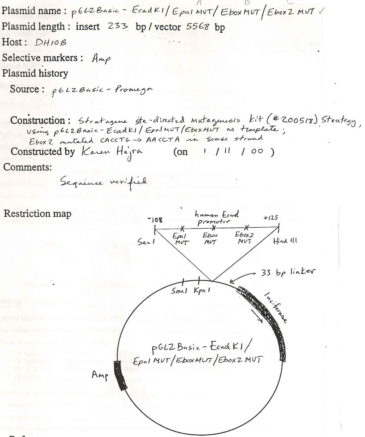 pGL2Basic-EcadK1/EpaIMUT/EboxMUT/Ebox2MUT