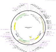 质粒名称:pTNT-B18R 质粒编号:58978 质粒备注: expresses B18R protein from Western vaccinia virus that binds to and neutralizes type I IFNs 载体名称:pTNT 载体大小:2871 完整质粒大小:3907 载体类型:原核表达 原核抗性:氨苄青霉素,100μg/mL 培养温度:37℃ 克隆菌株:DH5alpha 高拷贝/低拷贝:未知 插入基因:B18R 基因别名:ankyrin repeat protein 物种来源:Vaccinia Virus 启动子:T7/Sp6 克隆方法:限制性内切酶 5'克隆位点:MfeI (destroyed during cloning) 3'克隆位点:NotI (not destroyed) 5'测序引物:SP6 质粒图谱: