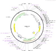 质粒名称:pCAG-CBE4max-SpRY-P2A-EGFP (RTW5133) 质粒编号:139999 质粒备注: CAG promoter expression plasmid for human codon optimized BE4max C-to-T base editor with SpRY(D10A/A61R/L1111R/D1135L/S1136W/G1218K/E1219Q/N1317R/A1322R/R1333P/R1335Q/T1337R) and P2A-EGFP 载体名称:pRZ33 载体类型:哺乳动物表达,CRISPR 原核抗性:氨苄青霉素,100μg/mL 培养温度:37℃ 克隆菌株:DH5alpha 高拷贝/低拷贝:高拷贝 插入基因:human codon optimized CBE4max SpCas9 variant named SpRY with P2A-EGFP 基因别名:RTW5133 物种来源:Synthetic 基因突变:nSpCas9=D10A; SpRY=A61R/L1111R/D1135L/S1136W/G1218K/E1219Q/N1317R/A1322R/R1333P/R1335Q/T1337R 启动子:CAG 克隆方法:Gibson Cloning 5'测序引物:oBK280-CCTACAGCTCCTGGGCAACG 3'测序引物:oBK23-CAGAGGGAAAAAGATCTCAGTGG 质粒图谱: