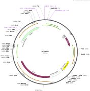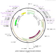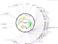 质粒名称:pcDNA-D1ER 质粒编号:36325 载体名称:pcDNA3 载体大小:5400 完整质粒大小:7400 载体类型:哺乳动物表达 筛选标记:新霉素(G418) 原核抗性:氨苄青霉素,100μg/mL 培养温度:37℃ 克隆菌株:DH10B 高拷贝/低拷贝:高拷贝 插入基因:D1ER second generation cameleon (calcium sensor) targeted to ER 物种来源:Synthetic 插入大小:1983 启动子:CMV 克隆方法:限制性内切酶 5'克隆位点:BamHI (not destroyed) 3'克隆位点:EcoRI (not destroyed) 5'测序引物:T7 Forward 3'测序引物:BGH Reverse 质粒图谱: