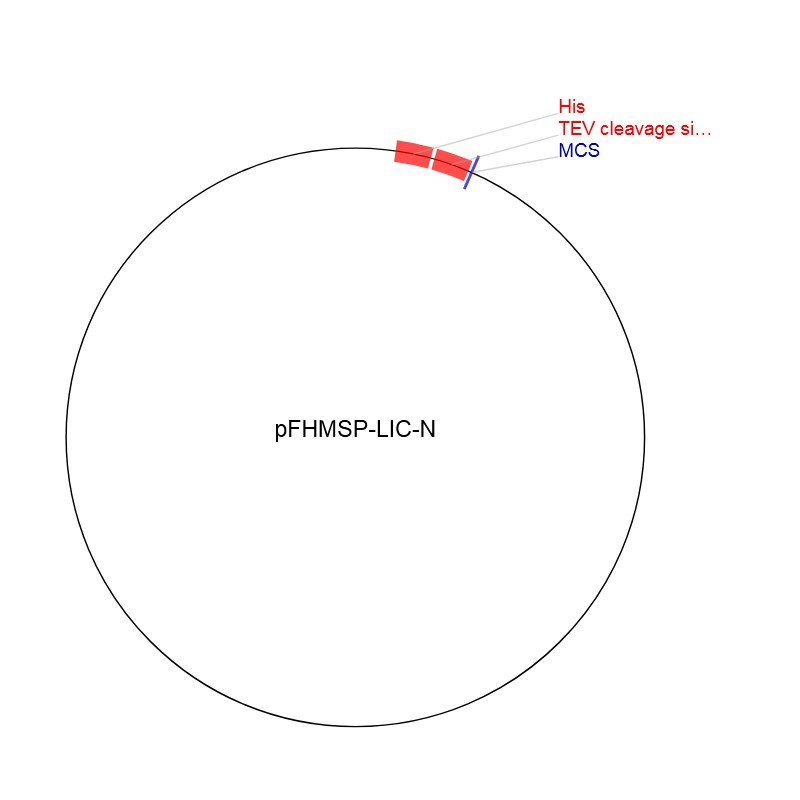 质粒名称:pFHMSP-LIC-N 质粒编号:26095 质粒备注: (Empty Backbone) Donor vector to generate recombinant baculovirus by site-specific transposition into a baculovirus shuttle vector For use with Bac-to-Bac Expression System insect cells for secreted protein expression 载体名称:pFHMSP-LIC-N 载体类型:Insect Expression ; Baculovirus expression 原核抗性:Ampicillin, 100 渭g/mL 培养温度:37掳C 克隆菌株:DH5alpha 高拷贝/低拷贝:高拷贝 启动子:polyhedrin 标签/融合蛋白:· His (N terminal on backbone) · TEV cleavage site (N terminal on backbone) 克隆方法:Ligation Independent Cloning 5'测序引物:pFHMSP-fwd (5'-CCGGATTATTCATACCGTCCCACCA-3') 3'测序引物:pFHMSP-rev (5'-CTGATTATGATCCTCTAGTACTTCT-3') |