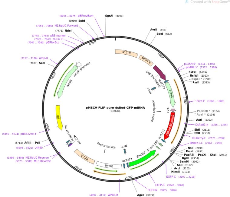 pMSCV-FLIP-puro-dsRed-GFP-miRNA