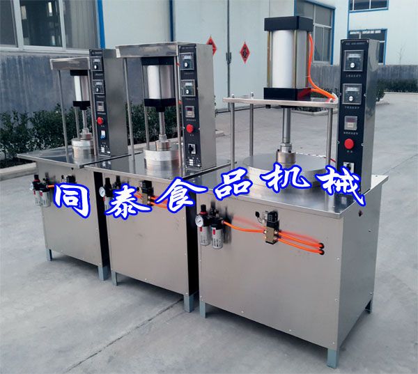 诸城同泰机械专业生产各种型号单饼机、单饼压饼机,能满足各个地区不同需求。同泰牌单饼压饼机采用上下模具同时加热,利用气缸压力瞬间把面团挤压成单饼,同时加热熟,生产速度快,节省劳动力,降低生产成本,是单饼加工的一款理想设备。