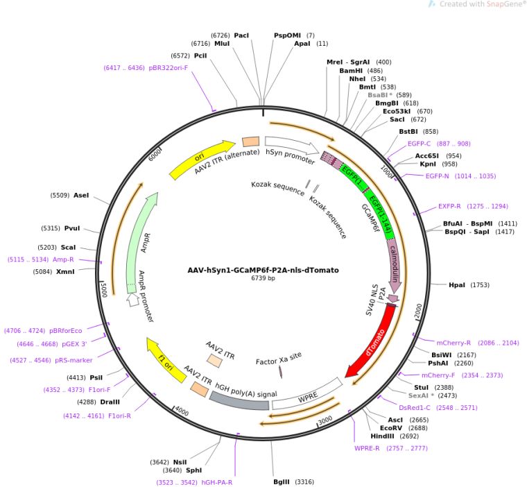 AAV-hSyn1-GCaMP6f-P2A-nls-dTomato