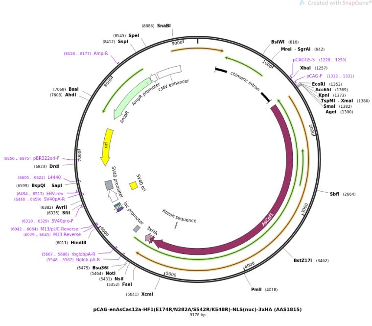 pCAG-enAsCas12a-HF1(E174R/N282A/S542R/K548R)-NLS(nuc)-3xHA (AAS1815)