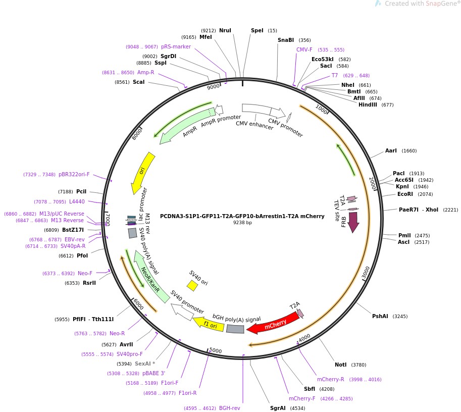 PCDNA3-S1P1-GFP11-T2A-GFP10-bArrestin1-T2A mCherry