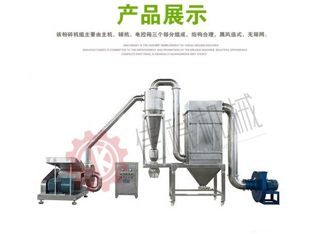 工作原理 五谷杂粮万能粉碎机纯属高速运转机械,采用一面快口刀刃,另一面为四击刀片,使被粉碎物料经高速旋转刀片剪切获得粉碎。该机还可根据不同物料选用各种形状及尺寸不同的刀片。粒度大小通过更换筛网获得。