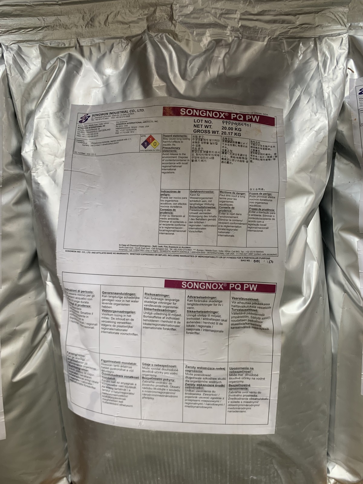 SONGNOX® PQ 技术说明书 1. 成分:四(2,4-二叔丁基酚) 4,4'-联苯二亚磷酸酯 CAS NO : 119345-01-6 分子量:1035 分子式:C68H92O4P2 2. 规格指标 3. 特点及用途 ●有机聚合物辅抗氧剂 ●在聚烯烃,弹性体,工程塑料和胶黏剂等领域具有高效稳定剂 ●在合成,制造及终端应用等领域具有优异的颜色稳定作用,可以改善产品的光稳定效果 ●是聚合物加工过程中高效稳定剂及变色抑制剂 ●容易受潮-更多信息请参考该产品化学品技术安全说明书 4. 外观 PW(粉末) 5. 包装 20KG 铝袋包装 |