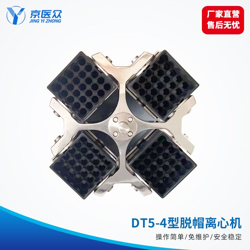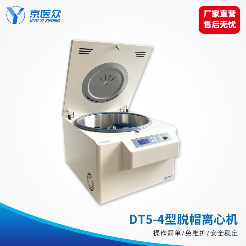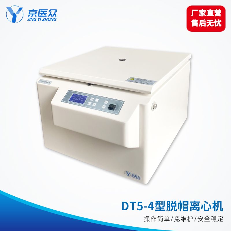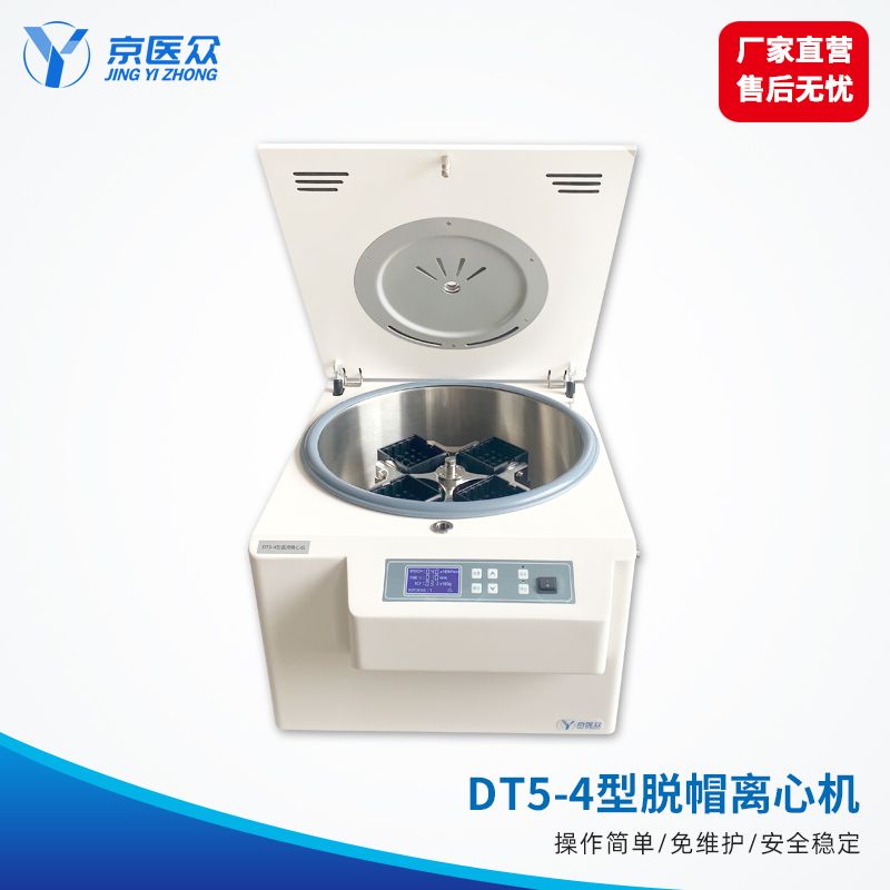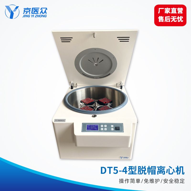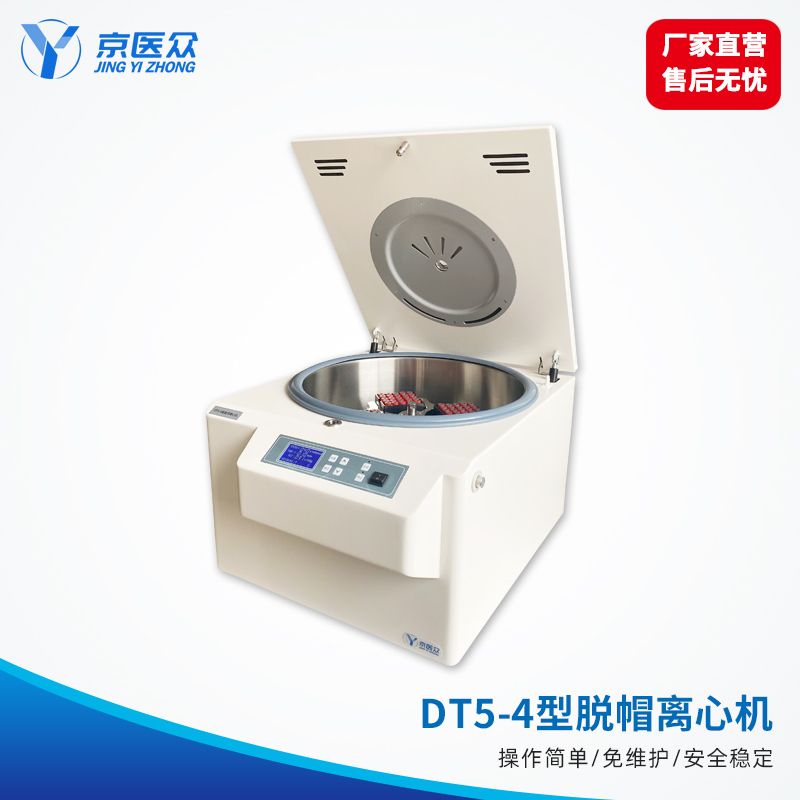 DT5-4型医用离心机是专为医院、血站、体检中心等单位专业设计而成,集自动脱帽、离心一次完成,彻底解决医院在分离真空采血管中脱帽的难题,提高了工作效率。 仪器特点: 直流无刷电机,免维护; 微电脑控制,可预选转速、时间、离心力,液晶显示,按键操作、简便耐用; 记忆功能,自动记忆上次运行参数; 10种升降速率供选择,可快速启动、快速停机; 内置自动平衡装置; 金属机箱、不锈钢容器室,电子安全门锁,离心机运行时,门锁不能打开 确保离心安全;内置风盾、噪音更小;故障报警功能。
