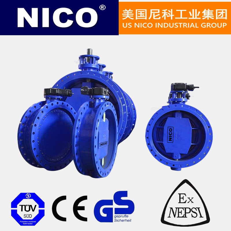 美国尼科NICO进口双偏心软密封蝶阀为偏心金属密封结构,密封形式为软密封对金属,可调换金属密封圈对金属密封,不锈钢板与石墨复合板密封圈对金属密封,其结构特征为在阀杆轴心既偏离蝶板中心、也偏离本体中心,双偏心的效果使阀门被开启后蝶板能迅即脱离阀座、大幅度地消除了蝶板与阀座的不必要的过度挤压、刮擦现象、减轻了开启阻距、降低了磨损、提高了阀座寿命。在蝶阀阀体圆柱形通道内,圆盘形蝶板绕着轴线旋转,旋转角度为0°~90°之间,旋转到90°时,阀门则是全开状态。给排水、污水、食品、供暖、燃气、船舶、水电、冶金、能源系统以及轻纺等行业,特别适用于单向密封和阀体易锈蚀场合,作调节流量和截流介质。