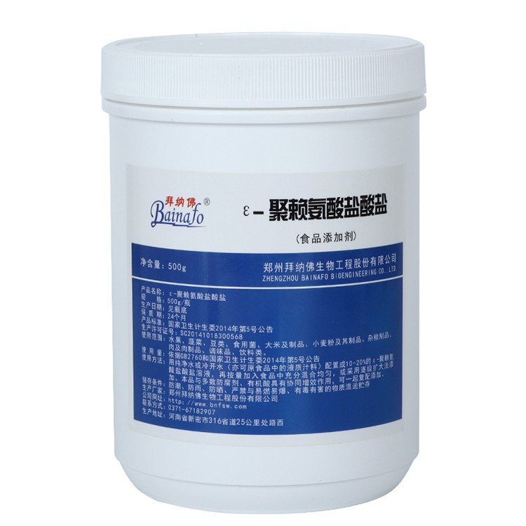 食品添加剂ε-聚赖氨酸盐酸盐从淀粉酶产色链霉菌(Streptomyces. diastatochromogenes)受控发酵培养液经离子交换树脂吸附、解吸、提纯而来,可作为防腐剂用于水果、蔬菜、豆类、食用菌、大米及制品、小麦粉及其制品、杂粮制品、肉及肉制品、调味品、饮料类。国家卫生计生委于2014年4月3日2014年第5号公告《关于批准ε-聚赖氨酸等4种食品添加剂新品种等的公告》批准ε-聚赖氨酸为食品添加剂新品种。 特性 1. 抗菌谱广:能有效地抑制革兰氏阳性和阴性菌、酵母菌、霉菌和其他微生物。 2. 耐高温:高温环境下(121℃,30分钟)不分解,故可参与产品热处理过程、与原料一起加工生产。 3. 溶水性强:易溶于水,溶解度至少为500 g/L。 4. pH使用范围广:在pH 2~9条件下,具有较强的抑菌能力,可以弥补其他防腐剂在中性和碱性条件下活性低的缺点。 5. 协同增效性强:作为一种新型的食品防腐剂单独使用便具有良好的抑菌效果,与其他食品添加剂(如醋酸、乙醇、甘氨酸、有机酸等)搭配使用更能协同增效,大大提高抑菌效果。 6. 安全性高:急性毒理试验LD50为5g/kg,与食盐相当。人体摄入ε-聚赖氨酸盐酸盐后,能降解成赖氨酸营养物,被吸收利用。 |
