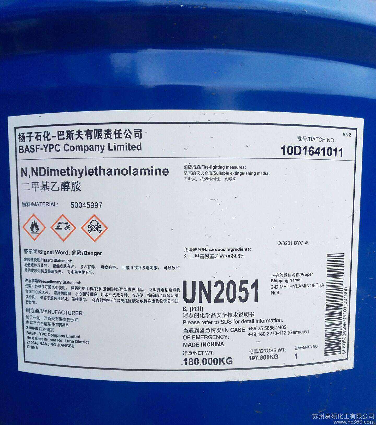 简称DMEA,系无色易挥发液体,有氨味,沸点134.6℃。 用于离子交换树脂;用于高纯水制备及糖液脱色, 电影洗液三废治理等;用于聚氨酯软质块状泡沫, 模塑泡沫和硬质泡沫, 阴燃弹性泡沫等;用作水溶性涂料助溶剂, 聚氨酯漆固化剂;与丙烯酸微生物的反应产物作为城市净化水场的絮凝剂。