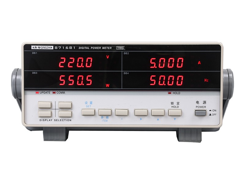 产品特点8716B1的设计采用了先进的32位高速处理器和双路24位AD转换器,具有高精度、宽动态范围、结构紧凑灵巧等特点是新一代数字化电参数测量仪器,可以测量有效值电压、电流、有功功率、功率因数、频率。