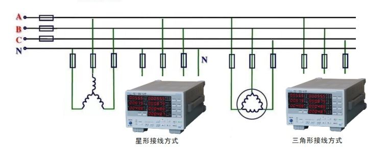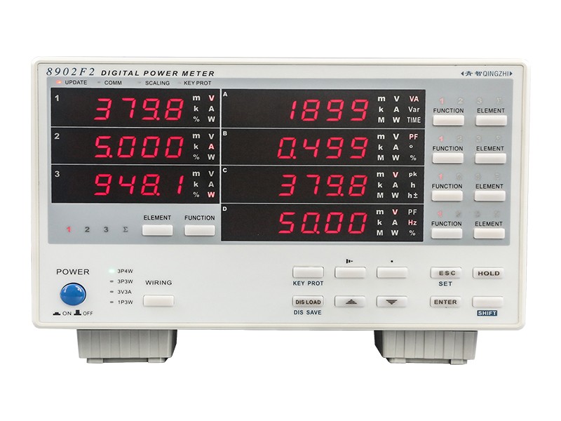 产品特点8902F2/8904F2仪表特点 .三相工频(45-65Hz)测试 .七窗口数码管显示 .40A大电流量程 .通讯接口RS232和RS485 三相工业用电的接线方法分为两种: ●一种是三相四线制带有中性线N的接线方式 ●另一种是三相三线制不带有中性线N的接线方式 8902F2和8904F2可以准确的测试出在这两种接线方式工频情况下的各项参数