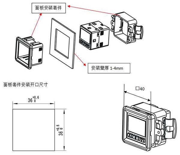 支架式安装 支架可自制或选购我公司配件,安装尺寸如下图