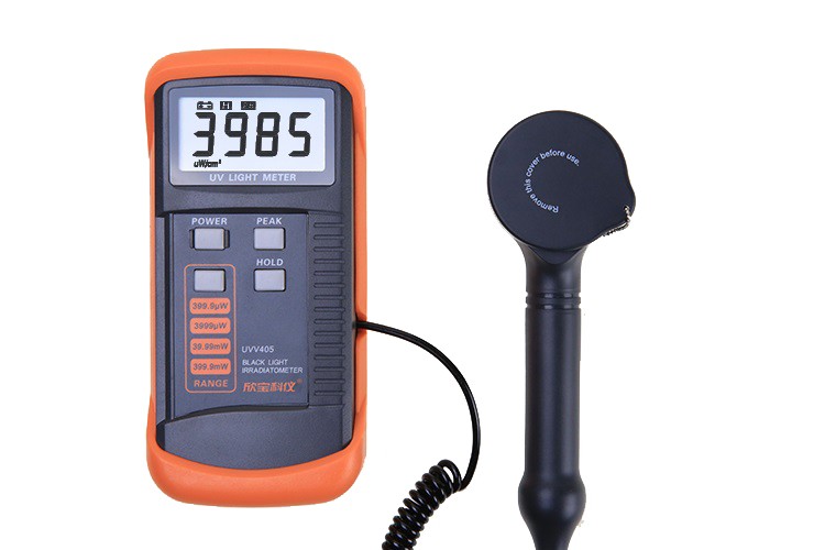 显示: 3 3/4位液晶显示屏,最大读数3999. 测量范围:0-400 mW/cm2, 四档位测量;400μW档,4000μW档,40mW档,400mW档(1000 μW/cm2 = 1 mW/cm2) 探测器波长范围:370nm – 470nm 探测器的光谱:峰值420nm,50%以上透过率波段395nm到450nm 准确度:±(8%R+ 2dgt)(R:读数),带外区杂光小于0.1% *在UVV光源下进行校准,并与标准UVV表进行比较 *特别测试环境下的射频场强度小于3伏/米,频率低于30兆赫 探测器结构:紫外增强型光电二极管和UVV波段过滤校正镜 取样率:2次/秒 过载显示:显示‘OL’ 重量:320克(含电池) 操作温湿度:0℃ to 40℃(32℉-104℉) 0~80%Rh 电源:直流9V 6F22型电池 耗电量:直流约2.7毫安 尺寸:表身 160x78x43mm ,探测器 165x50x32mm |