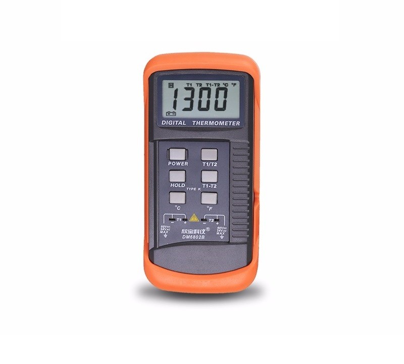 双通道温度表可分别测量T1和T2温度,也可测量T1-T2的温差值。有摄氏/华氏转换功能。