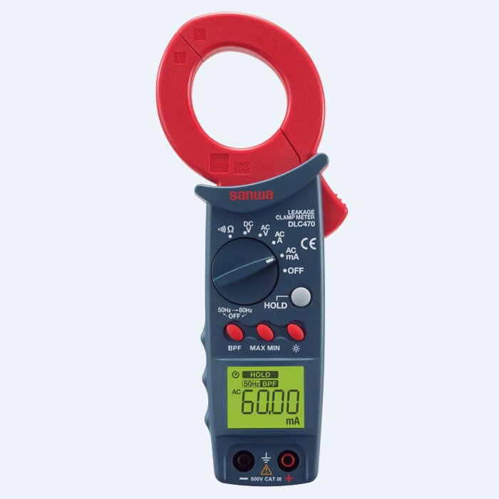 日本三和(sanwa)DLC470泄漏电流钳形表,轻巧耐用的的交流泄漏电流钳表,用于测量正在运行电气线路绝缘状况的测量仪表。 LED显示屏和背光,即使在光线较弱的位置也能有效读数,增强了可读性。 产品特点 ● 搭载了仅提取以ACA、AcmA和50Hz/60Hz为中心的频带的带通滤波器 ● 0.01mA分辨率的mA测量功能 ● 漏电流·负载电流都可以测定 ●最大/最小值,便于捕获信号变化 ●数据保持功能 ●自动省电关机模式(30分钟)延长了电池寿命 ●电池消耗警告显示 ●标配镀金表笔,防腐,防接触不良,提高测量的精度 ●安全规格: IEC61010 CAT.III 600V 技术参数