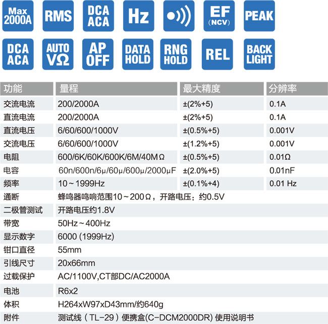 DCM2000DR钳形电流表