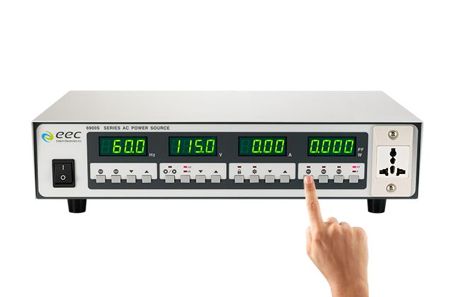 | 便利的單手操作 简易功能键的操作介面,易于纪录各种测试环境所需的参数设定,让使用者可轻松快速地上手,大幅提升产线与实验室的工作效率 。 |  |  | 快速呼叫的记忆功能 内建3组参数记忆设定,可透过快速键直接呼叫已设定过的参数,并直接进入所需的测试环境,提升整体工作效率。 | 更強固、更可靠 6900S导入双滚珠轴承的风扇设计,提升散热效果,让使用者不论处于任何操作环境下,都能拥有高效能的稳定电源与长时间的正常运作。 |  |  | 高负载的输出功能 6900S具备EEC工程师发明的”超载电流恒定输出功能” (OCF),搭配浪涌电流可达额定电流的4倍与波峰因素高于3的设计,让使用者不需要购买较大容量的电源,即可轻易启动高启动电流负载(如马达、压缩机),节省工厂与实验室的设备成本。 | 可应用广泛的测试设定 6900S基础型交流电源频率涵盖40Hz〜450Hz全范围可调功能,最大电压可达 310V,不但适用于全球不同地区电源环境下的测试条件,更可满足不同产业(如服务器)的测试规范。 |  |