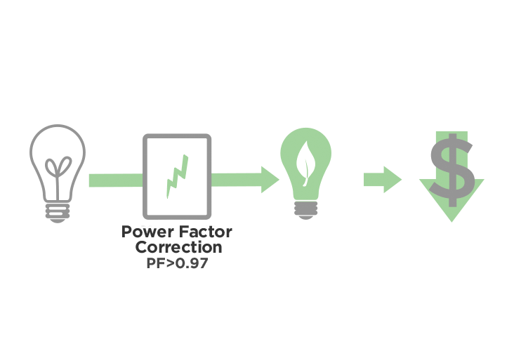 | 高度省电,成本降低 大功率电源也代表其相当耗电,需支出许多能源成本。EAB内建功率因子改善设计可达PF>0.97,节省能源消耗,降低成本。 |