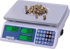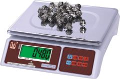 HX-S4 | | | | | | 型号Model | 最大称量Max.Capacity | 分度值Division | | | HX-S4 | 3Kg | 0.1g | 0.05g | | | 6Kg | 0.2g | 0.1g | | | 15Kg | 0.5g | 0.2g | | | 30Kg | 1g | 0.5g | | | HX-S4 | 称盘尺寸Pan Size | 230×300mm不锈钢盘 S.S.pan cover | | | 包装规格Carton size | Size:67.5×35×40.5cm GW:18kg 5pcs/ctn | | | | | | | | | 衡新计数秤功能特点 | 1.使用高精度传感器,称重二级精度可选择,精度可设置,精度可达1/60000; | 2.秤内部双铝架结构,有传感器过载保护装置防压、防摔; | 3.秤壳全新塑料注塑,秤盘不锈钢430材料; | 4.电池电量图标指示功能; | 5.重量称重上下限报警,数量点数上下限报警功能; | 6.单重记忆,方便客户使用; | 7.数量累计和重量累计功能; | 8.采用大屏幕液晶白光显示,清晰美观. | | | | | | | | | | |