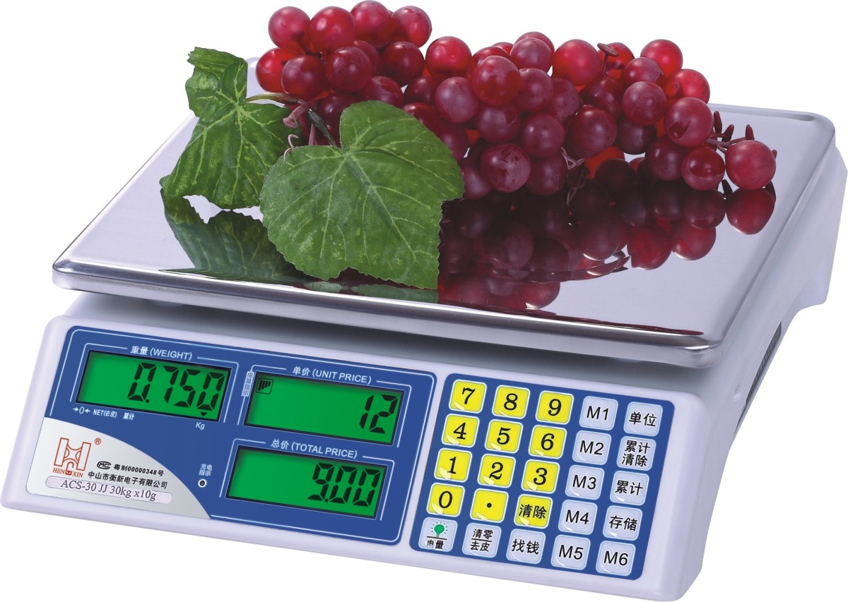 | 衡新计价秤功能特点 | | 1.使用高精度传感器,称重四级精度可选择; | | 2.秤内部双铝架结构,有传感器过载保护装置防压、防摔; | | 3.秤壳全新塑料注塑,秤盘不锈钢430材料ABS塑料果盘可以选配; | | 4.电池电量图标指示功能; | | 5.五个等级设置选择动物秤称重模式; | | 6.待机状态省电模式可选择,可连续待机使用2个月; | | 7.六组单价记忆,找钱功能,方便客户使用。 | |