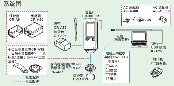 新一代经济型便携式色差计,CR-10的升级款,是性能优良又价格亲民的高性价比选择。 新一代经济型便携色差计CR-10 Plus作为CR-10的升级款,在原有轻便灵活、便于携带的基础上,更实现了与电脑的连接,可进一步扩展数据管理的范围,满足了质检人员频繁快速的现场测量并给出即时结果,帮助企业实现高效的供应商与产品的质量控制。 操作简便,瞬间测量样品颜色与基准色的色差仅需开机→测量目标→测量样品三步操作,即可完成测量,并有中英日文三种语言显示。 人性化设计,机身轻巧 1、外形紧凑,性能**2、大屏幕LCD显示,易于读取3、手握的槽深以及测量按钮的位置都是精心设计,可以满足不同的握持习惯,符合人体工学4、平滑精细的表面,来源于高精度的外观处理工艺 支持电脑应用程序,使用更方便 测量仪内置有电脑应用程序,可进一步扩展数据管理的范围。(注:使用电脑应用程序时,须另行准备电脑。) 1、将测量数据保存到测量仪中测量仪内存中最多可保存 1,000组测量数据(含基准色)。(设定后,无需每次启动电脑应用程序,即可使用该功能。) 2、将测量数据保存到电脑中测量仪中保存的数据,既可显示在电脑应用程序中,也可保存到电脑中。 3、通过蜂鸣声和点亮指示灯轻松实现合格/不合格判定测量前,可将阈值设定为默认值。当测量值超过阀值时,会高亮显示。此外,还可根据蜂鸣声的类型和点亮的指示灯颜色辨别判定结果。(设定后,无需每次启动电脑应用程序,即可使用该功能。)