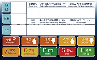 仪器主操界面 数码电子(输液瓶袋)平压机PYY-5000是我司专为YBB00342002-2015及GB/T 22934-2008/ISO8113:2004、GB/T4544-2020等标准规定的条件和参数要求,而研制开发的现代技术水平的产品,是医药输液瓶(袋)承受平行平板压力(负荷)专用的仪器设备。主要做塑料输液瓶(袋)的平行平板加压中温适性及针刺器保持性、插入点不渗漏型、注射点密封性中的平行平板加压检项测试。 技术特点: 该机具有现代液晶触彩屏式操控、显示的电子测试系统; 具有实时压力(达标压力)、未达标数、合格率百分比的显示和分析功能; 具有真正意义的恒定加压、即有3‰压力速率跟踪系统; 具有高刚性和稳定的加压结构系统,确保长寿命; 具有现代分级管理;数据存储和分析;审计跟踪;USB3000数据导出等功能; 专用软件接电脑可绘曲线图、合格率百分比图等; 技术指标: