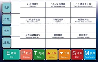 仪器主操界面 数码电子抗热震性、热冲击仪JBY-445即冷热急变仪,是我公司为贯彻GB/T4547-2007/ISO7459.2004;YBB00182003-2015国际和相关国家标准而开发、研制的试验用仪器设备。该仪器适用于轻工业啤酒瓶类、盛装瓶类,饮料瓶类等的各种玻璃瓶罐、容器等;医药包装业的针剂瓶类、抗生素瓶、输液瓶类等做玻璃制品抗热震性、热冲击试验中的合格性试验、递增性试验、全递增性及高温差和热震耐久性等冷热急变试验用仪器。 仪器主要技术指标: 1.受试温度0-100oC,加热功率3KW。 2.温度精度:0.01C。; 3.显示输出:液晶触摸屏;打印输出;3000条USB导出; 4.现代管理功能,多级分机管理,数据存储分析;审计跟踪、专用软件接电脑; 5.冷、热水槽温差均匀性小于±2oC(冷槽可更换冷水;热槽自动加温,并可自动搅拌)。 6.试件篮电动升、降;冷、热槽轻推转移,10S±2S完成。 仪器主要技术特点: 1.本仪器可完成ISO7459、2004;GTB4547-2007;YBB001822003-2015的全部检项。 2.一人操控可完成通过性、递增性、全递增性、高温差的试验;其中试件数、破损数、允许的破数。破数百分比、保持时间等多项参数均可置入供试验使用。 3.试前试件数、试后破裂数、操作者方便输入,此后自动累积试件数、破损数、破数百分比等,在达到高温差热震耐久性时,示窗字符自动变色,测试数据可打印输出。 |