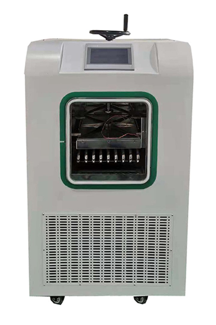 LGJ-10FD型冷冻干燥机(压盖型) 产品用途: 真空冷冻干燥机广泛用于医学、制药、生物研究、化工和食品等领域。经冷冻干燥处理的物品易于长期保存,加水后能恢复到冻干前状态并保持原有生化特性。FD系列电加热系列冷冻干燥机,能够加快干燥效率节省能源,可提供多种冻干方案设定,通过方案的设定加热以温度、时间的变化形成曲线,适用于科研实验或小批量加工生产。