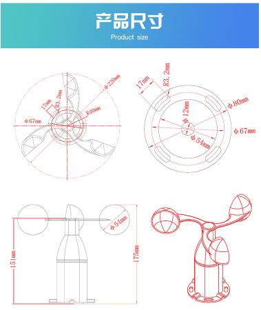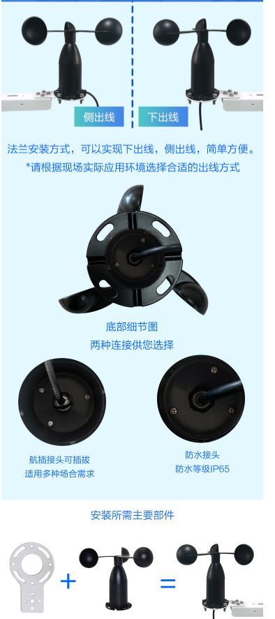 FC-15三杯式风速传感器是我公司自主研发、生产的一款风速测量仪器,传感器壳体采用铝制材料,尺寸公差甚小,具用高耐候性、高强度、防腐蚀和防水性。内部集成光电转换机构、工业微电脑处理器、标准电流发生器、电流驱动器等。 电路PCB采用**级A级材料,确保了测量参数和电气性能的稳定;电子元件均采用进口工业级芯片,使得整体具有极可靠的抗电磁干扰能力,能保证主机在-30℃~75℃,湿度5~95%RH(不结露)范围内均能正常工作。 产品升级后输出信号多样,有线输出包含:模拟信号(电压、电流)、数字信号RS485;无线输出包含:LoRa、蓝牙、WIFI、GPRS、4G、NB-lOT、CAT-1,无线输出除LoRa、蓝牙外,其他四种形式均可实现连接欧速智慧云平台,可实现智能终端数据的监测与管理。