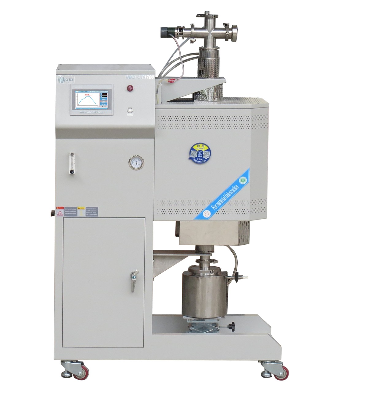 NBD-LT1700-60TI-200 立式淬火管式炉:优质保温材料由真空成形纤维板构成,具有低储热和低导热性能,从而能降低设备的能耗和缩短加热时间。通过配置不同的充气套件可在不易燃或易燃保护或反应气体条件下或在真空中运行。电动旋转脱扣结构,淬火更安全,结构更稳定。