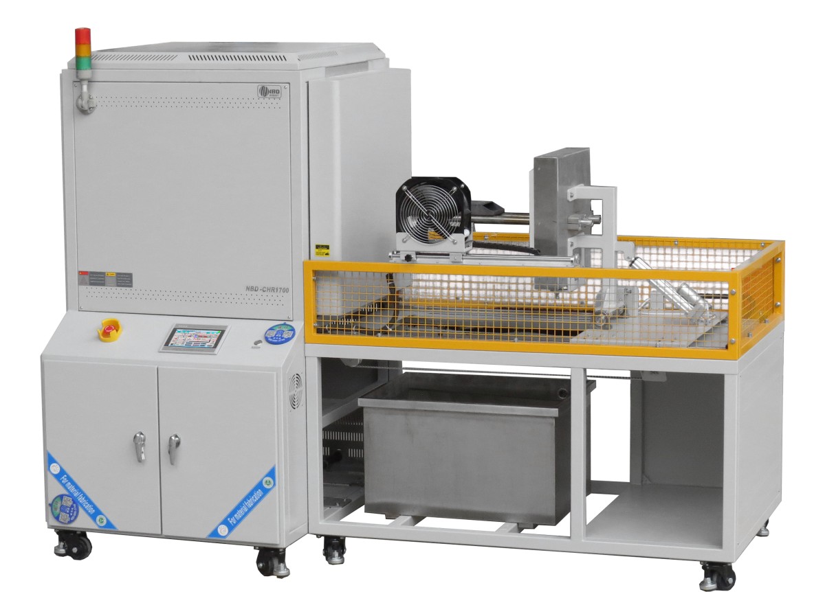 NBD-CHR1700-27TI 冷热疲劳热震试验机是为高等院校,科研院所及工矿企业对金属、非金属及其它化合物材料在真空或者气氛状态下进行烧结、融化、分析而研制的专用设备,采用PLC控制,触摸屏操作。 设备主要包括烧结系统、电控系统、运动系统和散热系统四部分。烧结系统采用高纯硅钼棒加热的方式,温区更加均匀,采用B型热电偶控温;电控系统控制部分采用7英寸触摸屏操控,温控方式采用温控表PID调节的方式;运动系统采用更稳定的电动推杆;散热系统有水冷和风冷两种,可用于不同材料,不用测试温度点使用。1200℃以下,既可以水冷,又可以风冷,1200℃-1650℃,只能风冷。