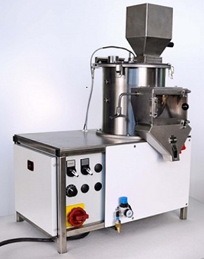 功能 ▲ 带有特殊搅拌叶片的搅拌包衣锅 ▲ 包衣锅转动部分无级变速调节 ▲ 雾化盘用于液体的精细喷雾(无喷嘴) ▲ 通过注射器、分配器或蠕动泵进行包衣料进样 ▲ 手动控制开关,操作非常简单 ▲ 多种出料漏斗可选,不同规格的袋子都有合适的出料漏斗 ▲ 打开包衣锅上盖用于吸尘和手动添加种子物料