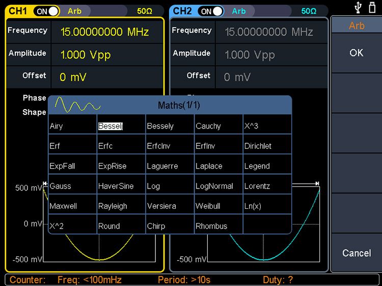 | 任意波形 | sinc、指数上升、指数下降、心电图、高斯、半正矢、洛仑兹、双音频、DC电压共计150多种 |