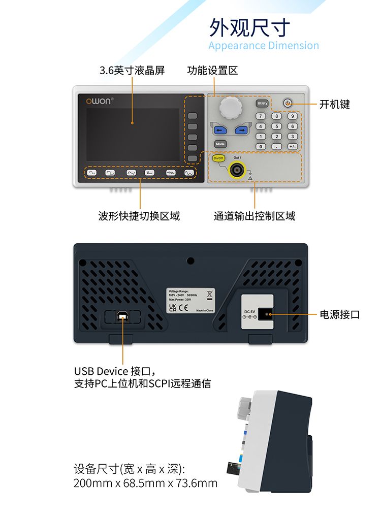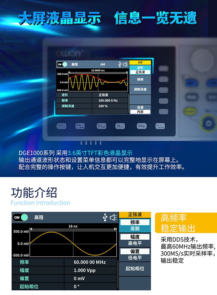 + 60MHz最高输出频率,300MSa/s最高采样率