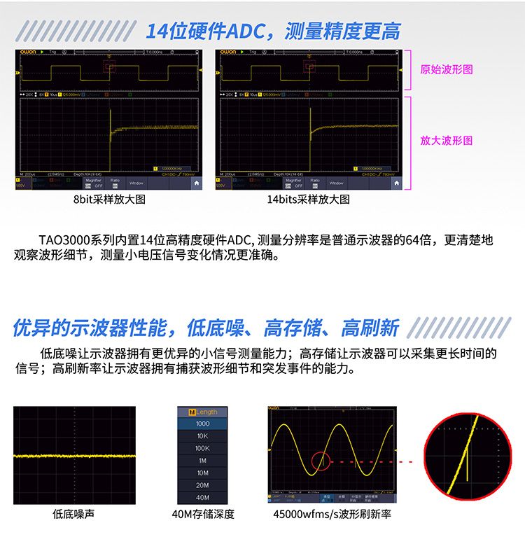 + 带宽70MHz/100MHz,实时采样率1GS/s + 最高14位高精度垂直分辨率 + 最高 40M 存储深度,45000 wfms/s 波形刷新率 + 低本地噪声,小信号测试更准确 + 8 英寸(800 x 600)多点触控液晶屏 + 支持SCPI、 LabVIEW + 多种高级触发和解码功能 + USB host, USB device,LAN,WIFI(选配)通信接口